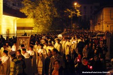 A mai trecut o noapte de rugaciuni la Iasi, pentru miile de pelerini veniti la sarbatoarea Cuvioasei Parascheva. Ei au urmat vineri seara preotii care au purtat pe umeri raclele cu moaste, in procesiunea numita Calea Sfintilor.