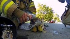 Actiunea a fost filmata cu o camera de ... actiune. O pisica devine viral pe Youtube foarte usor. O pisica cu un pompier si muzica pe fundal nu are cum sa nu devina un succes instant.